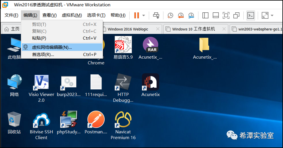 大家好,我是ABC_123,公众号正式更名为”希潭实验室”,敬请关注。在日常的渗透测试或者安全服务工作中,经常会用到AWVS、Nessus扫描器,一个是扫描Web漏洞,一个是扫描系统漏洞。这些扫描器一般不会直接安装在物理机中,因为部分漏洞扫描插件会被杀软报毒误杀,而且会开启很多服务拖慢物理机,因此多数朋友会将其安装在VMWare虚拟机中,等到需要的时候打开虚拟机使用即可,但是由此也引发出很多问题,比如说一开Nessus扫描器,5分钟或10分钟后虚拟机就断网,或者扫描结果没有在物理机上扫描准确,今天ABC_123就来总结一下这类问题,都是经验之谈。