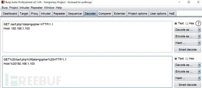 注意要对参数后面的gopher进行编码,因为http特性会自动解一次码把 : // /都编码