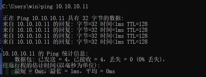 可以发现配置成功我们在使用有漏洞的主机去尝试ping这台不出网的主机