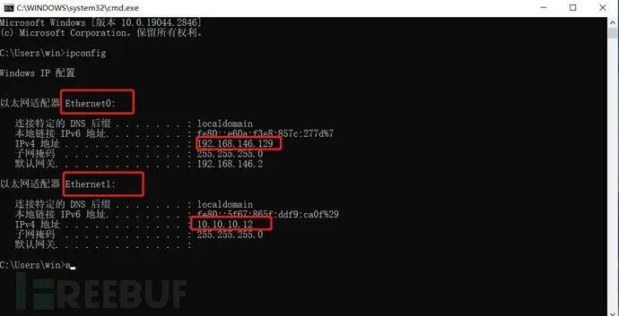 win10(SSRF) =>192.168.80.x 10.10.10.x (两张网卡)