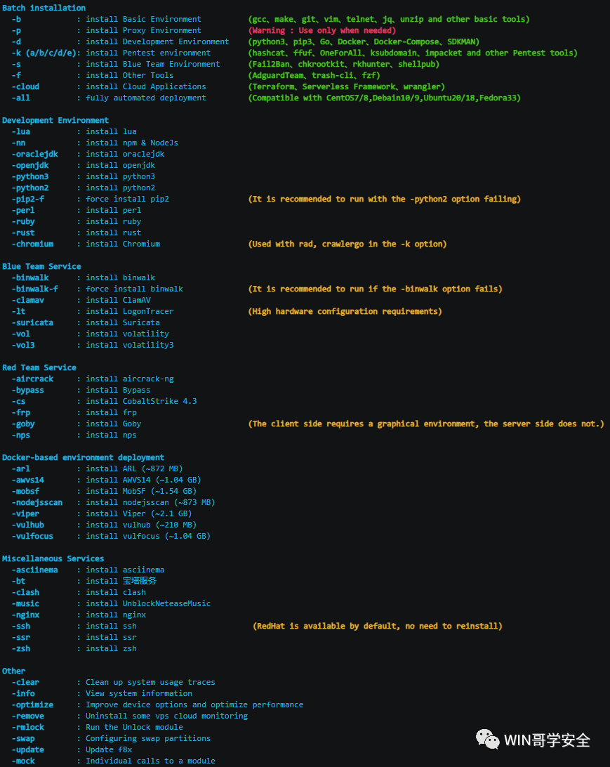 使用 -k 选项安装渗透环境 (hashcat、ffuf、OneForAll、ksubdomain、impacket 等渗透工具)