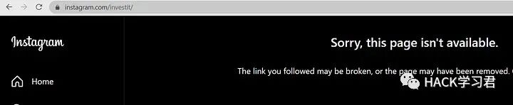 同样,在另一个网站上,一个 Instagram 页面链接到社交媒体句柄,但用户名无人认领。