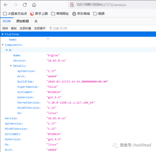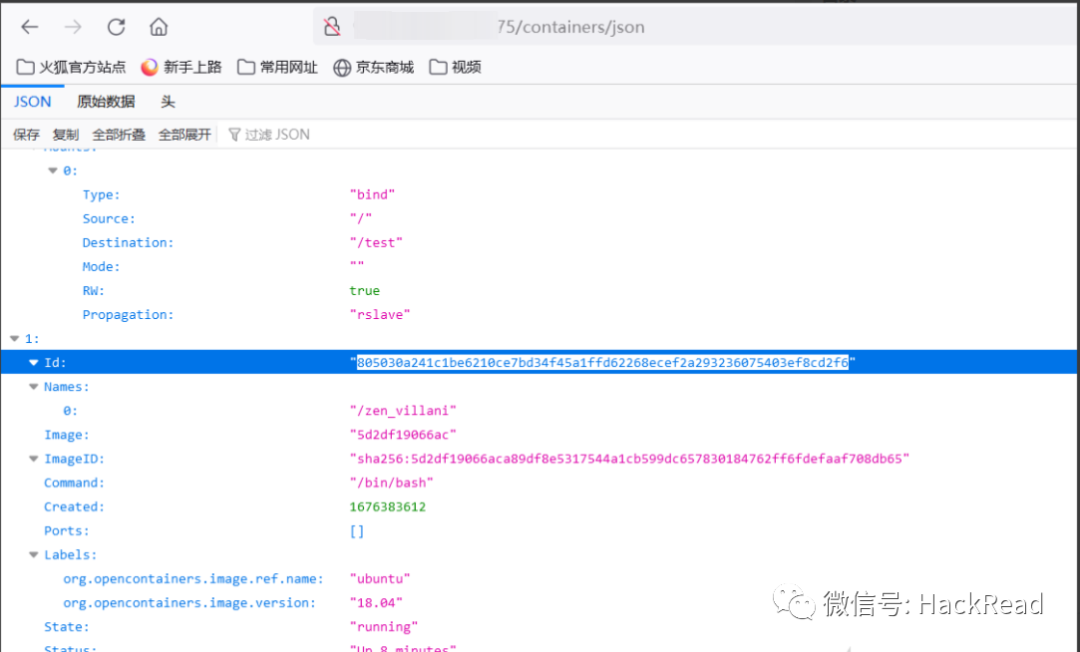 1、此时访问/containers/json,便会得到所有容器id字段
