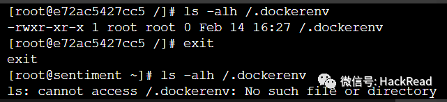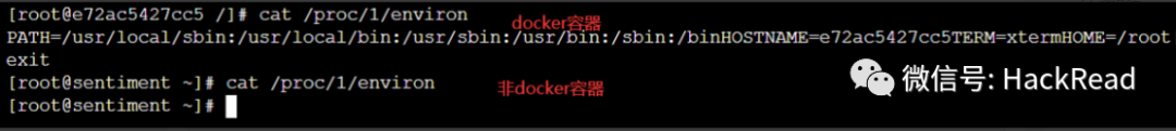 docker下默认存在dockerenv文件,而非docker环境中则没有