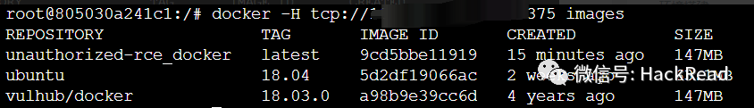 docker -H tcp://ip:2375 images3、启动一个容器并将宿主机根目录挂在到容器的test目录
