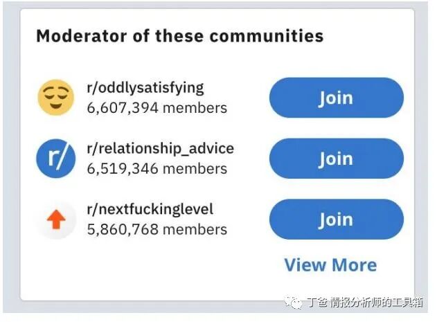 每个子Reddit都有自己的版主,他们是Reddit用户,负责监控子Reddit内的帖子和评论,确保他们遵守既定规则。版主是耗时的,所以任何一个Reddit用户版主很可能暗示一个强烈的兴趣subreddits topic。![]()
