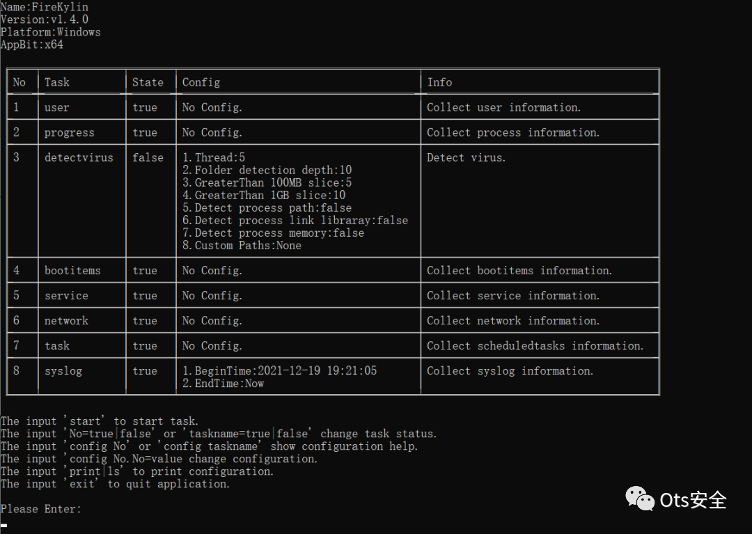 在应对安全事件上机排查时,对于没有此方面经验但是有研判能力的安全专家来讲,经常苦于需要参考各种安全手册进行痕迹采集、整理、研判,此时我们可以使用FireKylin-Agent进行一键痕迹收集,降低排查安全专家收集工作的难度。