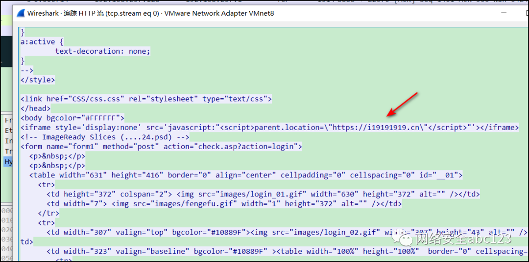 接下来使用wireshark抓取一个异常的数据包进行分析,很快发现了异常。同一个http请求,却返回了两个数据包,先到的返回数据包中,被插入了恶意js链接,后到的返回数据包没有被篡改,但是已经被丢弃了。至此基本上确定是链路劫持了。