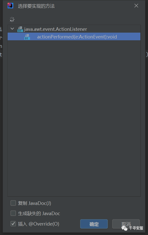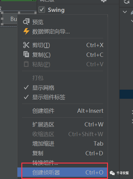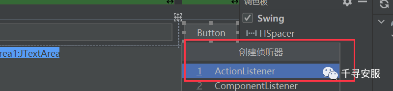 4.在按钮右键,创建侦听器->ActionListener,便于后续填充需要实现的功能。