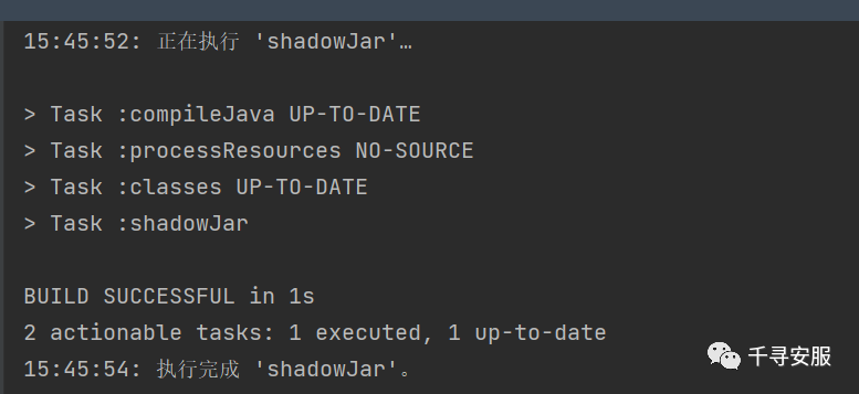 2.点击绿色锤子,构建,确认无报错后,点击侧边栏的Gradle,展开shadow目录,双击,shadowJar: