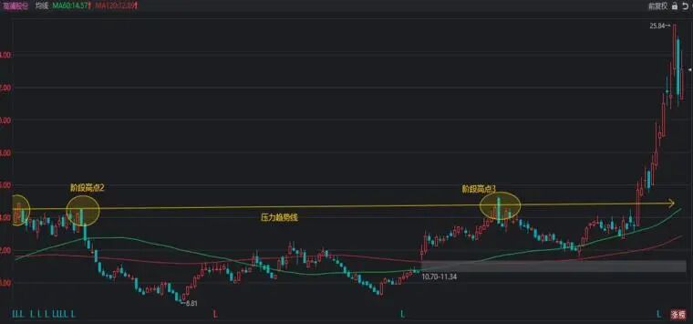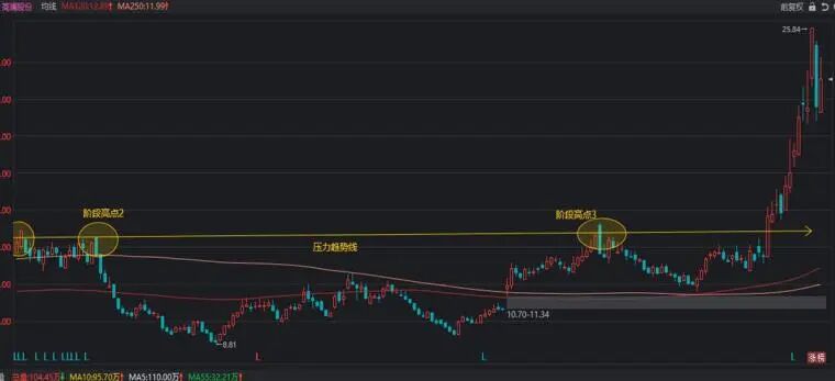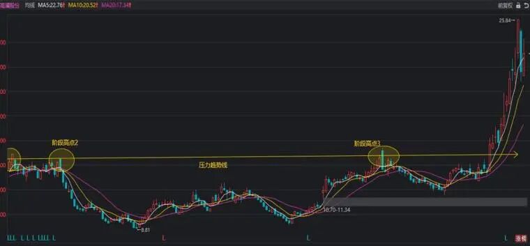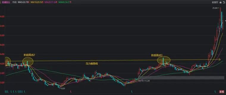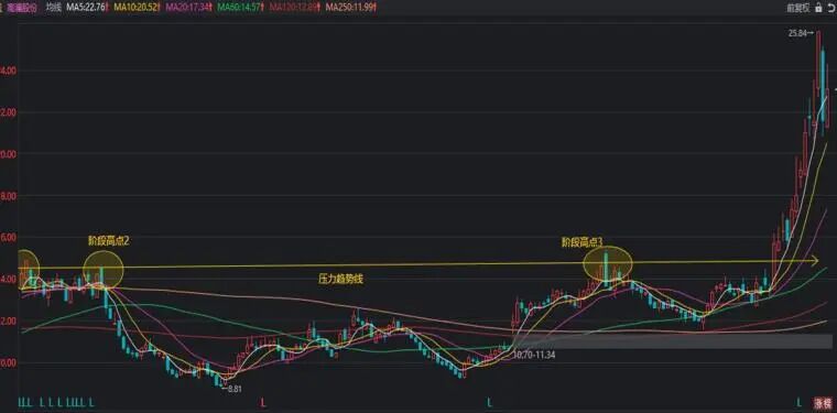 看上图,这是论术常用的均线系统,为什么可以去掉120日和250日均线。因为所有的突破长期趋势线压制的股票,基本上都是在年线和半年线之上的。在看图中,高澜股份大涨前,是不是回踩了两次60均线。并不是所有的股都会回踩,只是这条均线有一定的参考意义。