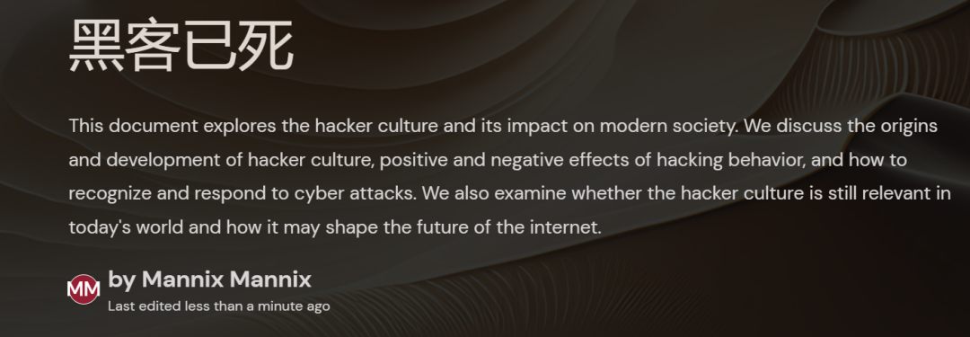 “黑客不是一种犯罪行为,而是一种创造行为。我们通过编程、设计、网络技术和信息安全,来探索和发现未知的领域和可能性。我们的行为虽然可能带有某种反叛的色彩,但也具有非常积极的、有利于社会的意义。”