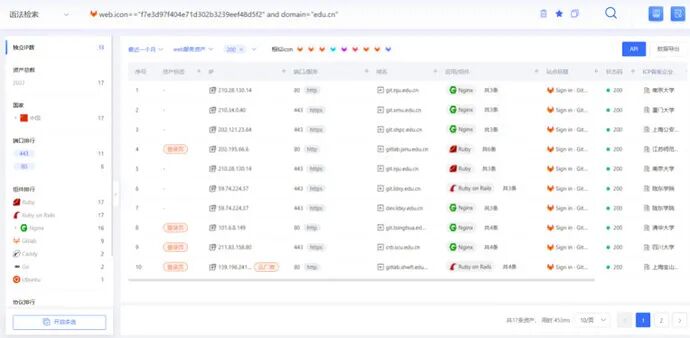 **先从图标下手,限定edu域名:可以看到有17条资产