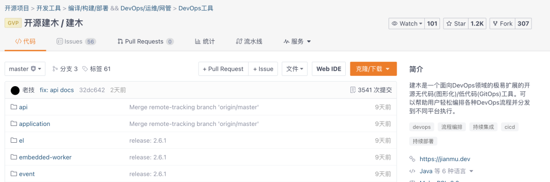 建木作为第三方工具与代码库 GitLink 集成,为 GitLink 提供 DevOps 引擎。我们提前为大家准备了 GitLink 体验账号和一些流程示例,无须将建木安装部署在本地,登录账号即可快速体验流程编排。
