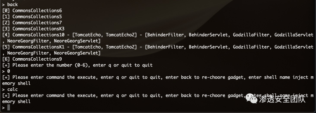 切换为普通命令执行gadget并执行 calc 命令