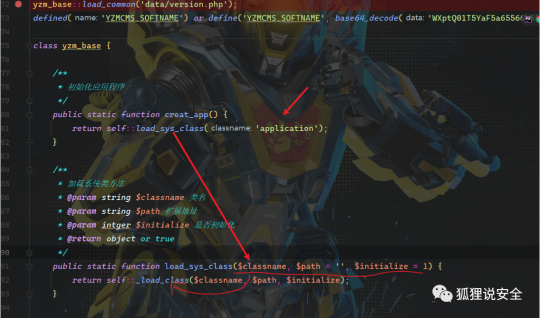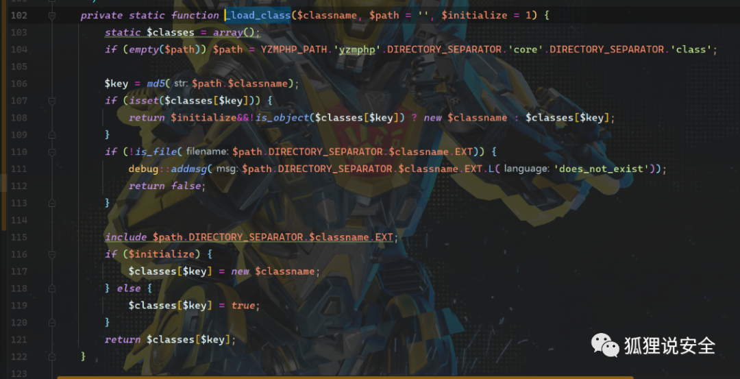 传值进入load_sys_class静态方法中,然后再传入_load_class静态方法中,在load_sys_class方法中设置$initialize的值为1,跟进下该方法