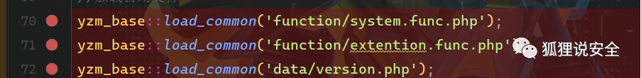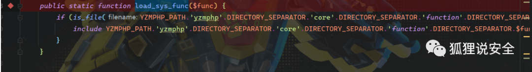33行调用了yzm_base下的load_sys_func()方法,跟进这个类,PHPstorm中按住ctrl+鼠标左键进行跟踪