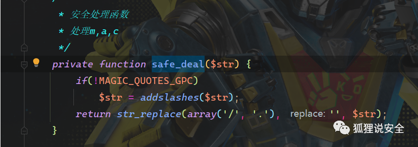 每个方法中都带有$ = $this->safe_deal($);,跟进下这个方法。