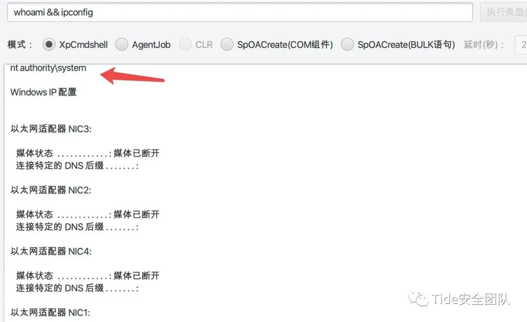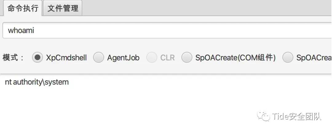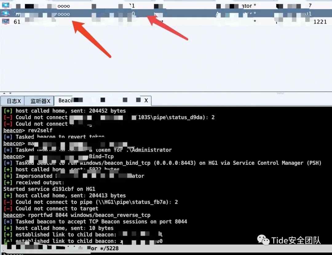 利用CS开启代理后,登录连接MSSQL数据库,执行命令为system权限最终利用数据库权限执行CS木马上线获取system权限。