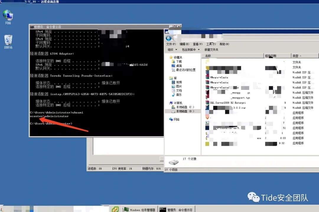 最后发现查看本机记录的mstsc发现可连接新网段机器,同时测试发现只有该服务器可访问连接该服务器后,继续发现存在套娃服务器xx.xx.xx.7测试发现均不出网,使用CS的中转功能进行中转跳板机上线并上传扫描工具对该网段进行扫描,扫描发现该网段存在vcenter管理控制台获取vcenter管理控制权