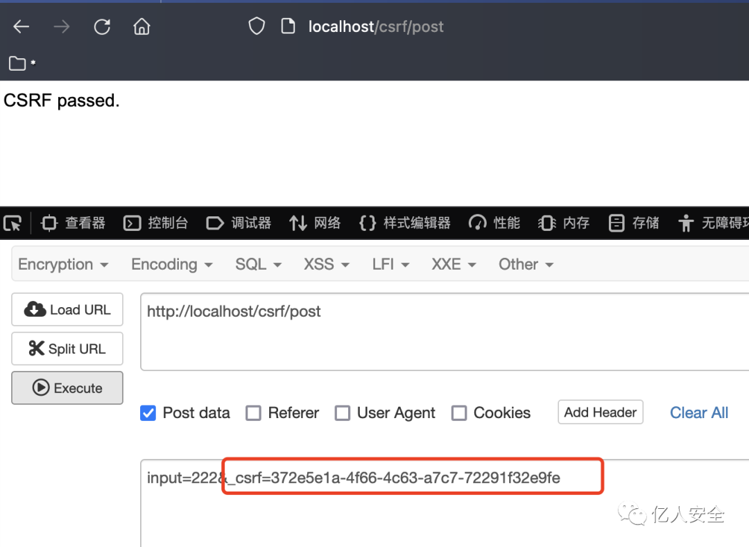 不提交token验证上面防护,这个字段就是用来表单提交,POST请求验证的csrf_token,后端生成的,提交后会和后端校验。如果我们直接通过POSTMAN或者其他post请求,缺少了csrf的token是无法完成的。如图