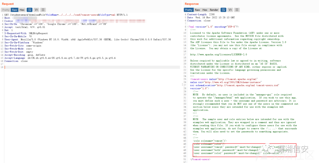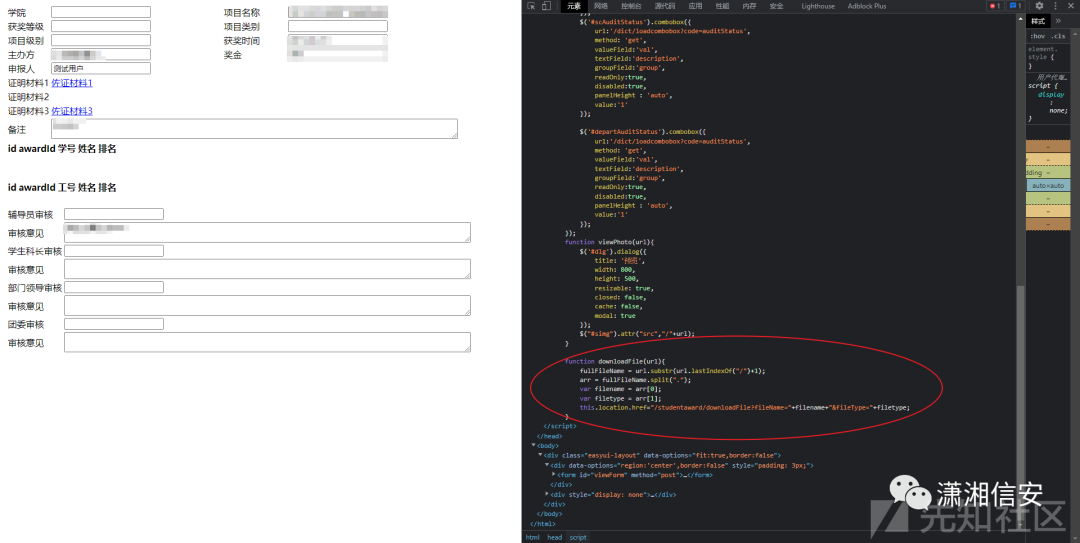 viewPage接口返回的数据里,可以看到调用了名为downloadFile的js函数盲猜这里可以进行目录跨越,fileName就是文件名,fileType就是文件后缀,还不清楚后缀是不是白名单