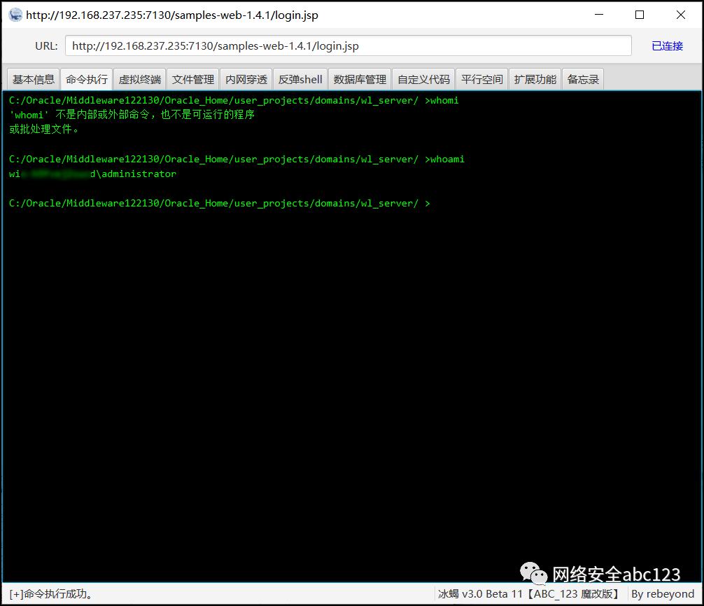 我记得最早在前年测试weblogic反序列化漏洞的时候,突然想到了,如果使用了shiro组件的网站是部署在weblogic中间件下,完全可以利用weblogic中间件的coherence组件的利用链来打。Weblogic反序列化漏洞大致是通过T3、IIOP协议发送一个序列化数据包,相关类只要不在weblogic黑名单中,服务器就反序列化恶意代码执行攻击语句。同样,这个序列化数据包用shiro组件来处理,只要中间件是weblogic,也应该能反序列化成功。而且通过构造的反序列化数据包不通过T3、IIOP流程,也许还不受Weblogic黑名单的限制。于是在本机搭建的一堆weblogic各种版本的虚拟机环境中,测试发现是可行的,但是中间也是踩了一大堆坑,实属不易。