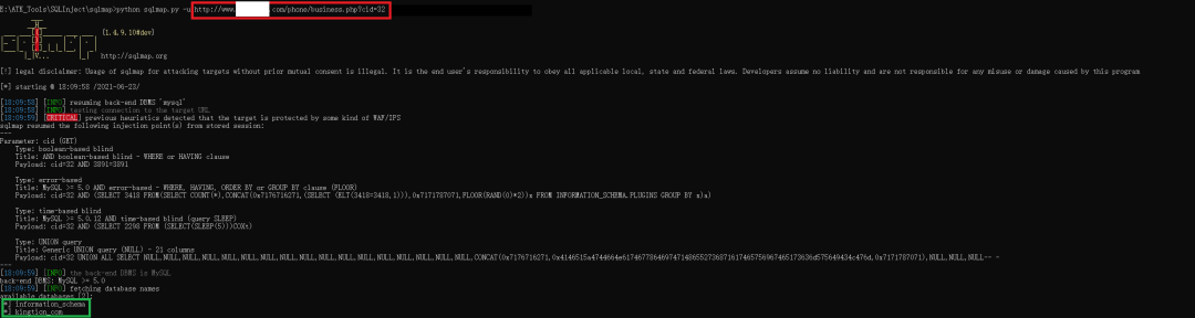 使用 and 1=1 和 and 1=0进行测试,这里输入?id=32 and 1=0 之后页面少了许多内容,那么漏洞应该存在,直接上SQLMAP跑