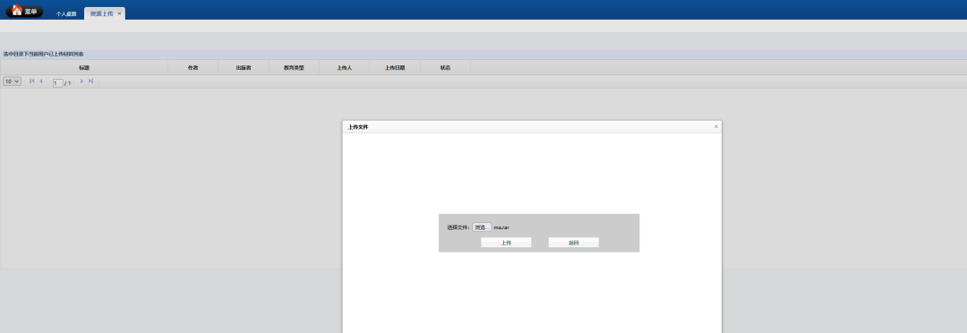 进入之后,想看看能不能getshell,先是翻了一下它的功能点,发现在资源管理中心里面的资源管理中有个资源上传的功能,然后就点进去看了看