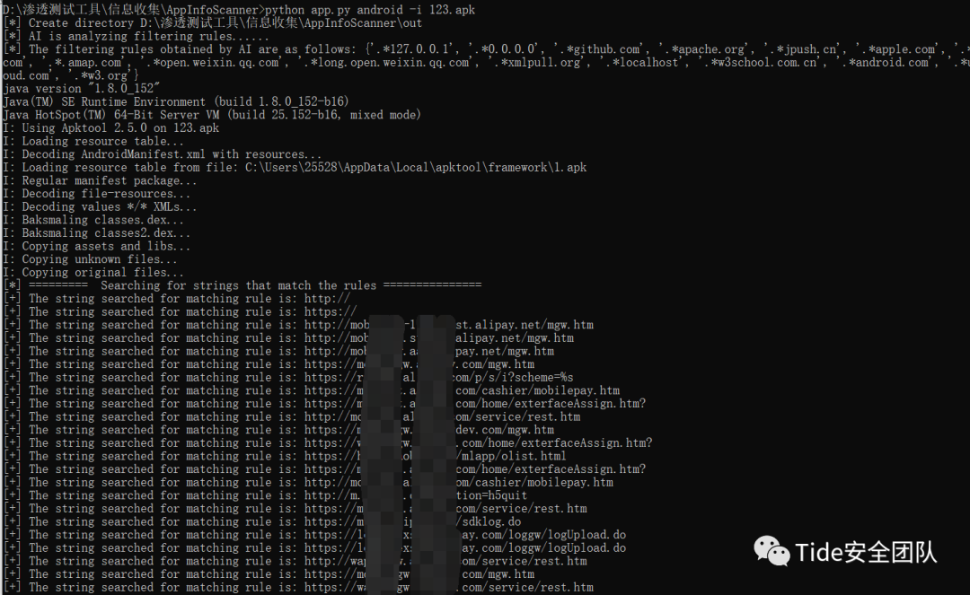 资产提取AppinfoScanner首先还是我们经常使用的AppinfoScanner,AppinfoScanner是一款适用于以HW行动/红队/渗透测试团队为场景的移动端(Android、iOS、W