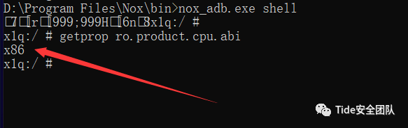 1、根据模拟器的位数去下载其相对应的frida-server脚本在这里可以调用夜神模拟器路径下的nox_adb.exe去调用命令nox_adb.exe shell //进入到模拟器bash视图getprop ro.product.cpu.abi //查看位数信息