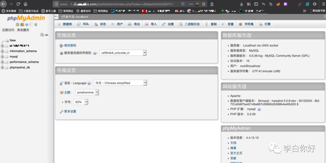 尝试admin rock1980登陆phpwind phpmyadmin未果,用root rock1980登陆phpmyadmin,成功登陆