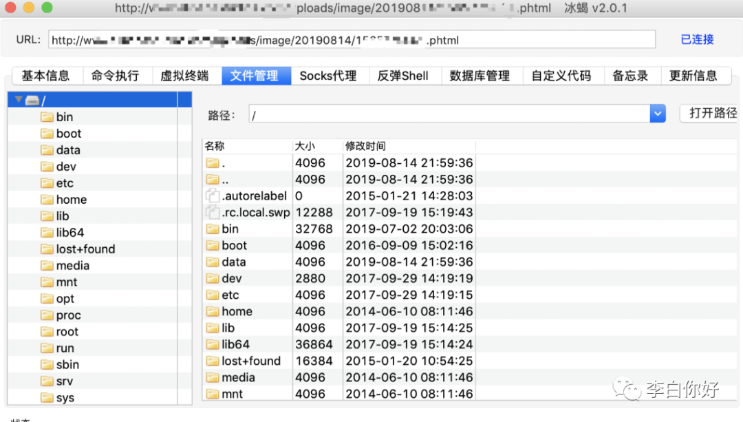 于是上传64 位的so文件,配合php,成功执行系统命令