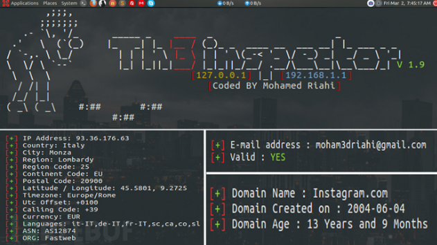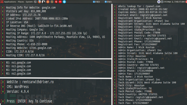 Th3inspector是一款功能强大的网络侦查信息收集工具,该工具整合了多种信息收集组件,可以帮助广大研究人员在网络侦查活动中完成各种信息收集任务。值得一提的是,该工具支持在Linux和Windows,甚至是Android操作系统平台上运行。