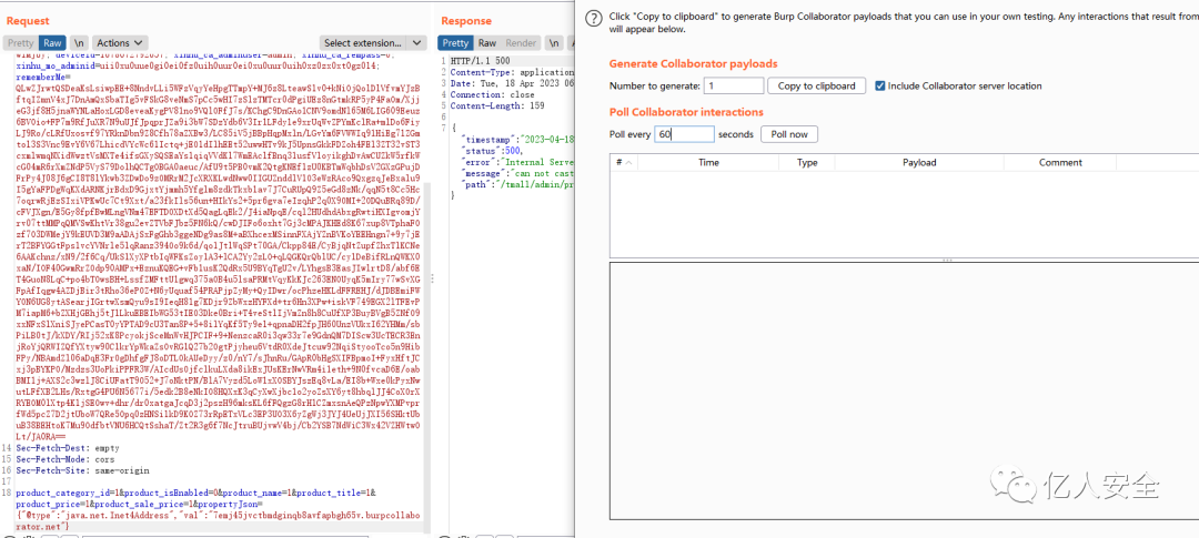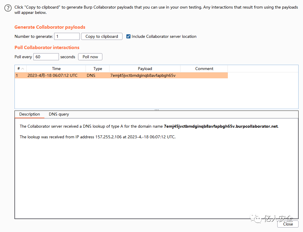 同样也可以使用burpsuite的dnslog进行漏洞验证。