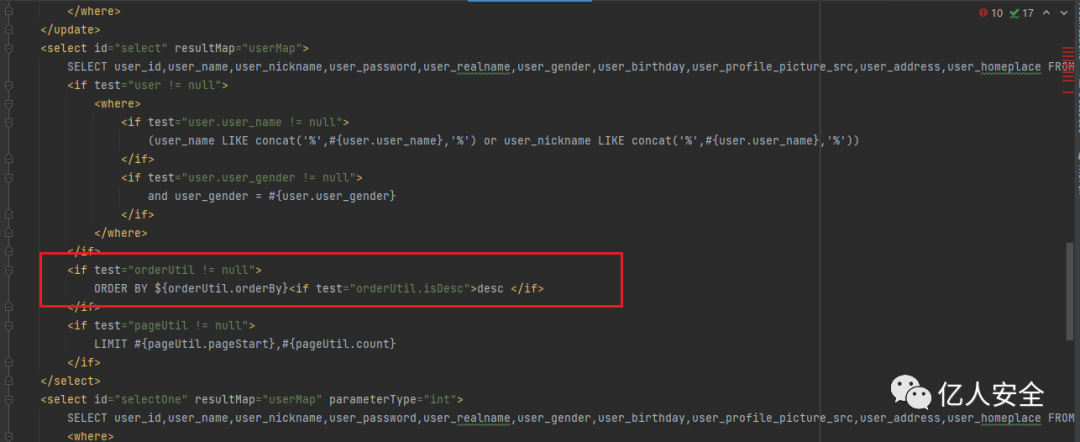 全局搜索关键字$,确实存在几处order by使用了$拼接SQL语句,因为order by是没办法使用#{}的。