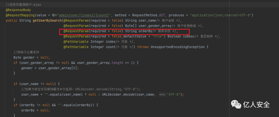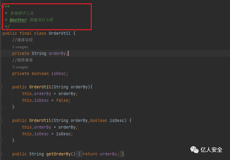 发现先实例化OrderUitl工具类,该类需要两个参数即,orderyBy和isDesc。点击进入查看该类的代码,