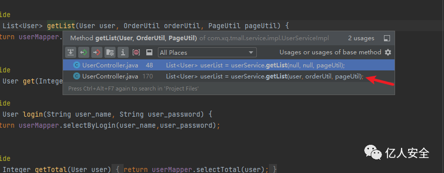 然后全局搜索之后,进入UserServiceImpl.java文件。