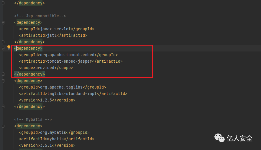 本项目引入的Mybatis版本为3.5.1,该版本存在远程命令执行漏洞。