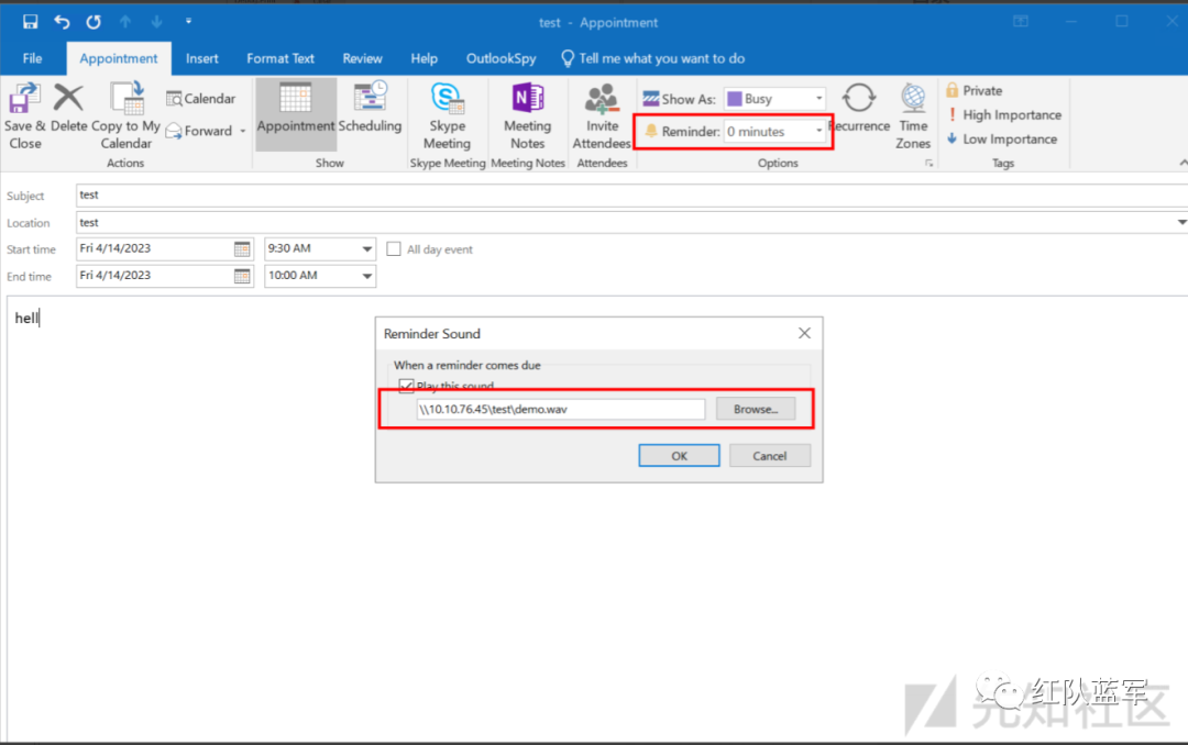 我们可以指定在用户(收件人)收到日历会议或事件的通知提醒时播放的音频文件(Reminder Sound)。Reminder Sound在一定条件下能被设置为UNC路径,