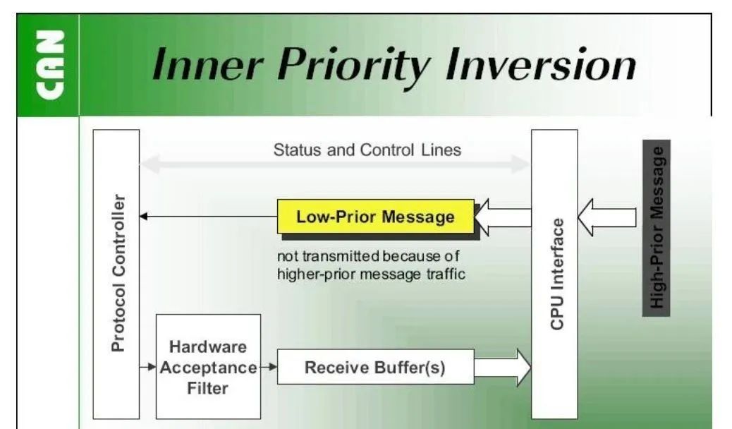 第二种可能就是需要检查Canif和CAN是否大量报文发送仅使用一个发送缓冲区,并且采用FIFO的方式进出,这样就会出现报文周期波动,其影响的原因是,假如大CANID的报文在前,小CANID的报文在后,大ID由于总线仲裁,无法发送,会导致小CANID的无法发送,从现象来看就是报文优先就翻转。