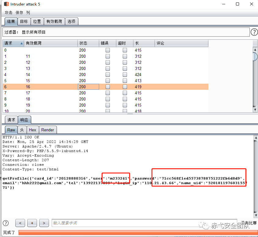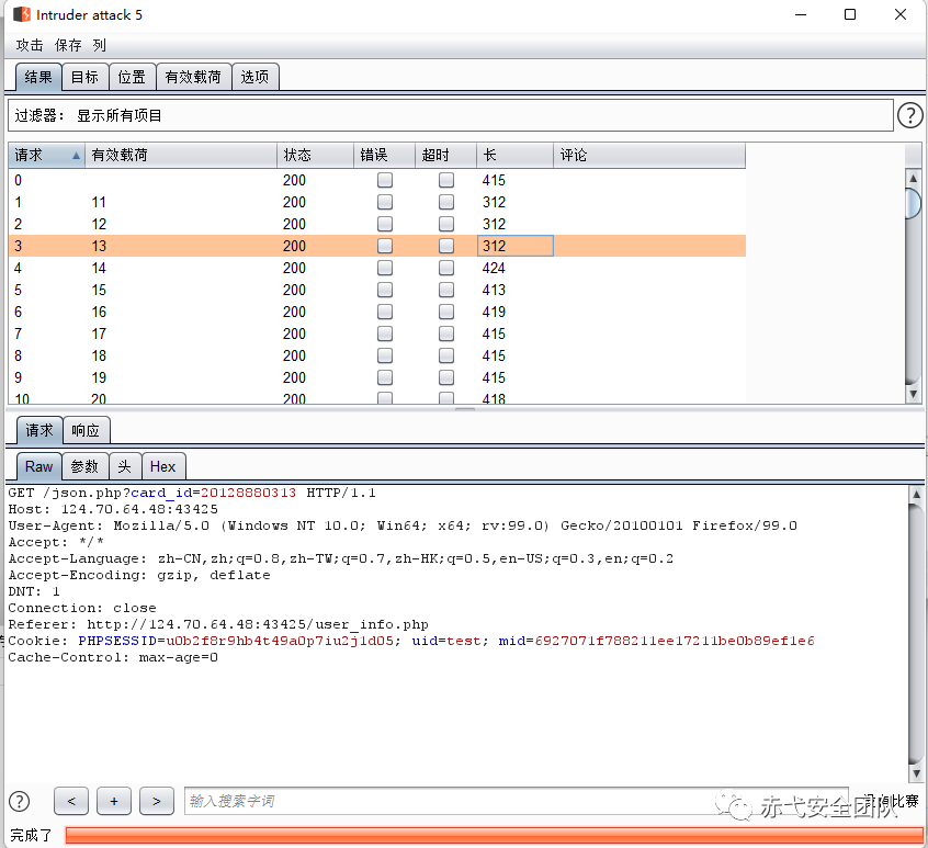 接着点击 三个代表响应长度的数字,在右侧查看具体响应;