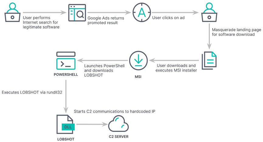 研究人员注意到今年早些时候恶意广告的采用率大幅上升。攻击者通过 Google Ads 使用精心设计的虚假网站方案推广他们的恶意软件,并在用户看来是合法安装程序的程序中嵌入后门程序。在这篇文章中,将重点介绍称之为 LOBSHOT 的恶意软件系列。