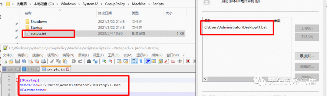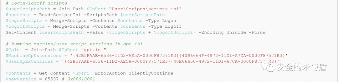 之前逆向分析过一个能够过360启动项监控的远控木马的工作原理(具体细节可以参考https://articles.zsxq.com/id_w2ue4o2bs2ju.html),关注到系统的组策略中的脚本(启动/关机)是一个很奇怪的点,360的启动项列举并不会列出这一项,所以这是一个很好的权限维持的点。