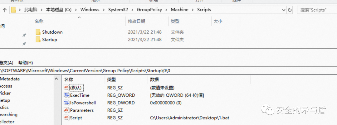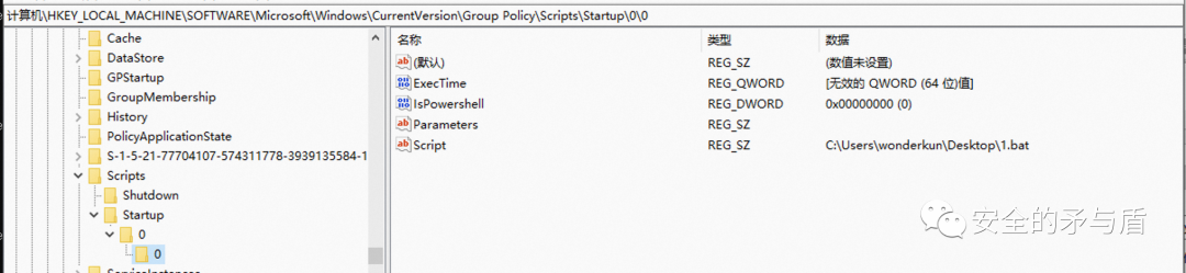 路径:C:\Windows\System32\GroupPolicy\Machine\Scripts注册表项1: HKEY_LOCAL_MACHINE\SOFTWARE\Microsoft\Windows\CurrentVersion\Group Policy\Scripts
