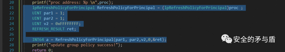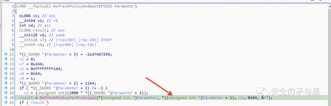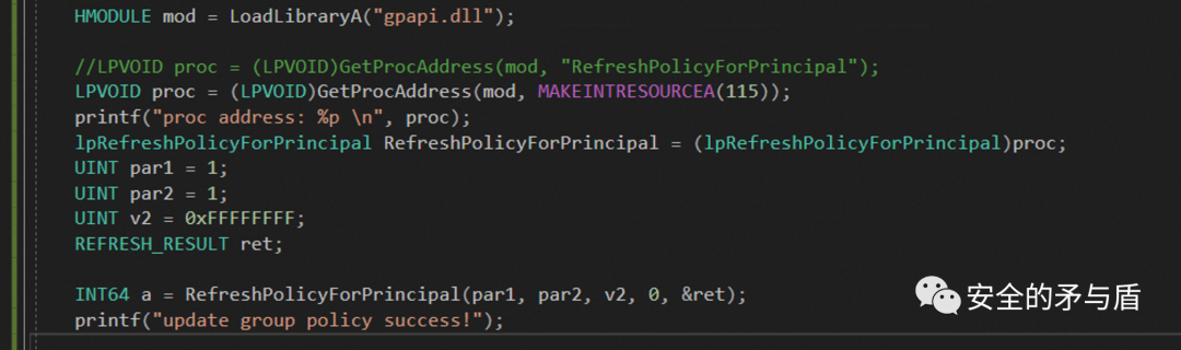 这里测试的时候发现只执行gpupdate是无法成功的,进行跟踪调试发现区别是调用RefreshPolicyForPrincipal的时候参数是不同的,普通情况下传入的参数是0,这里传入的是1。